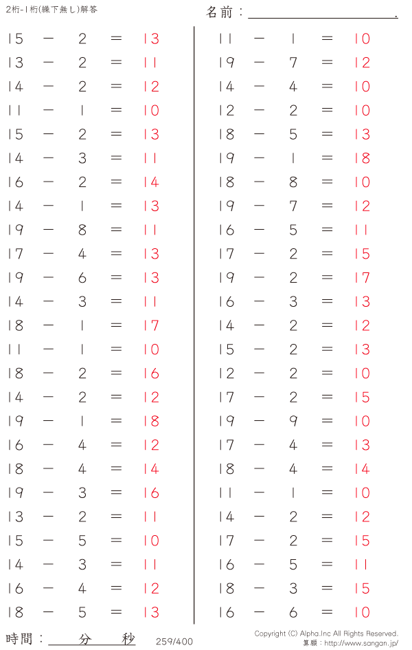 20未満-1桁(繰下無し) [解答]259/400