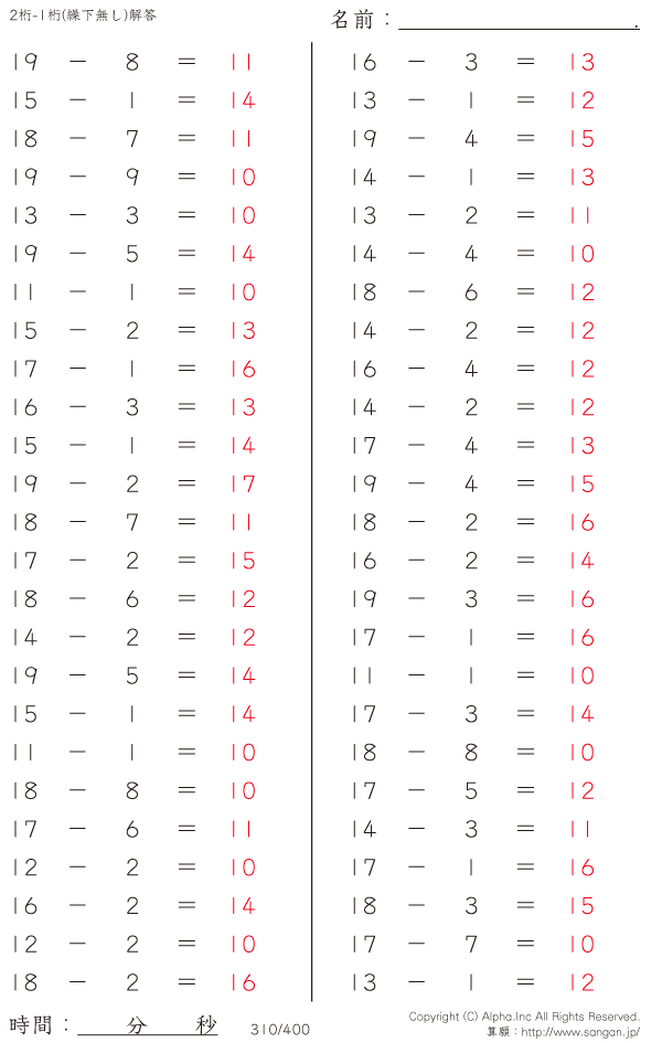 20未満-1桁(繰下無し) [解答]310/400