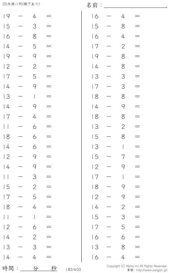 20未満の2桁-1桁 [問題]182/400