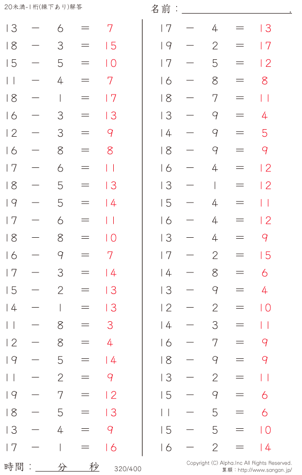 20未満の2桁-1桁 [解答]320/400