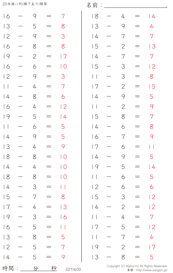 20未満の2桁-1桁 [解答]327/400