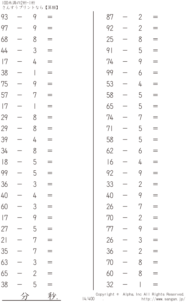 100未満の2桁-1桁 [問題]014/400