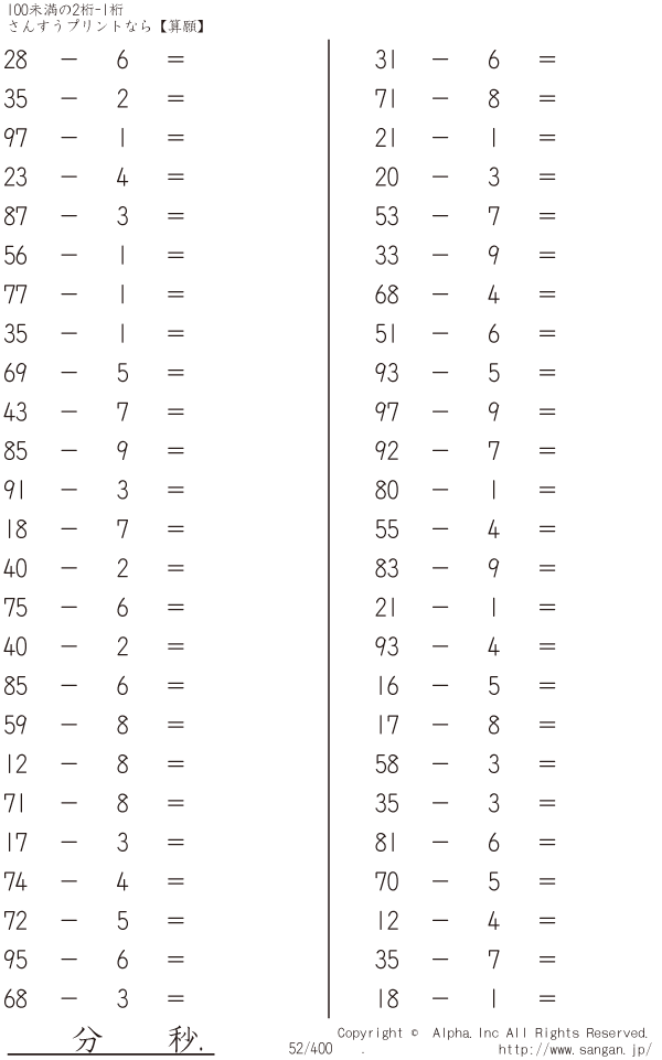 100未満の2桁-1桁 [問題]052/400
