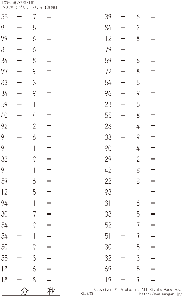 100未満の2桁-1桁 [問題]084/400
