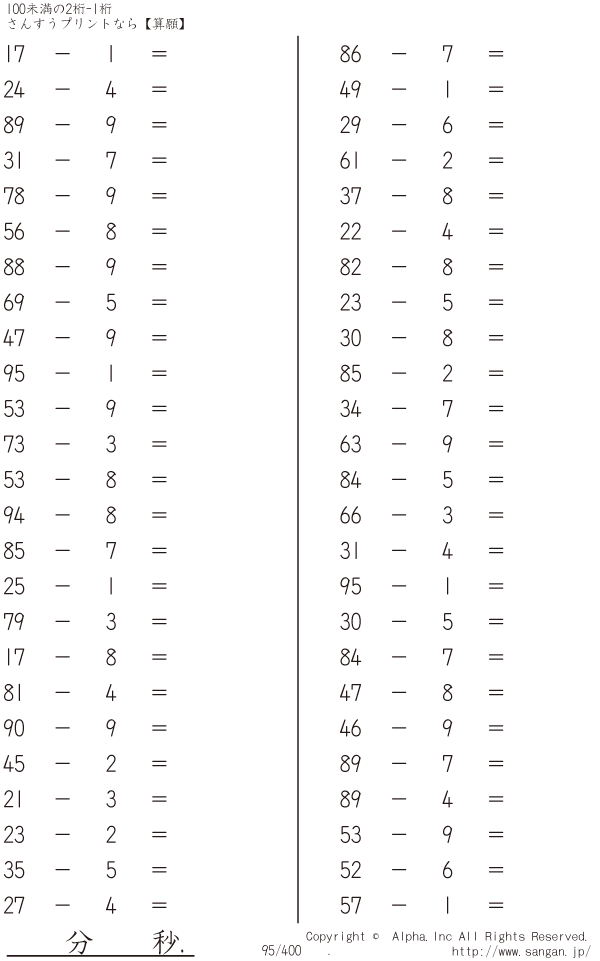 100未満の2桁-1桁 [問題]095/400