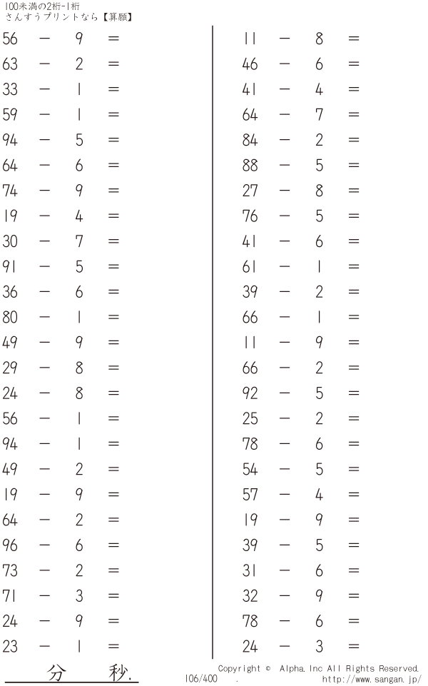 100未満の2桁-1桁 [問題]106/400
