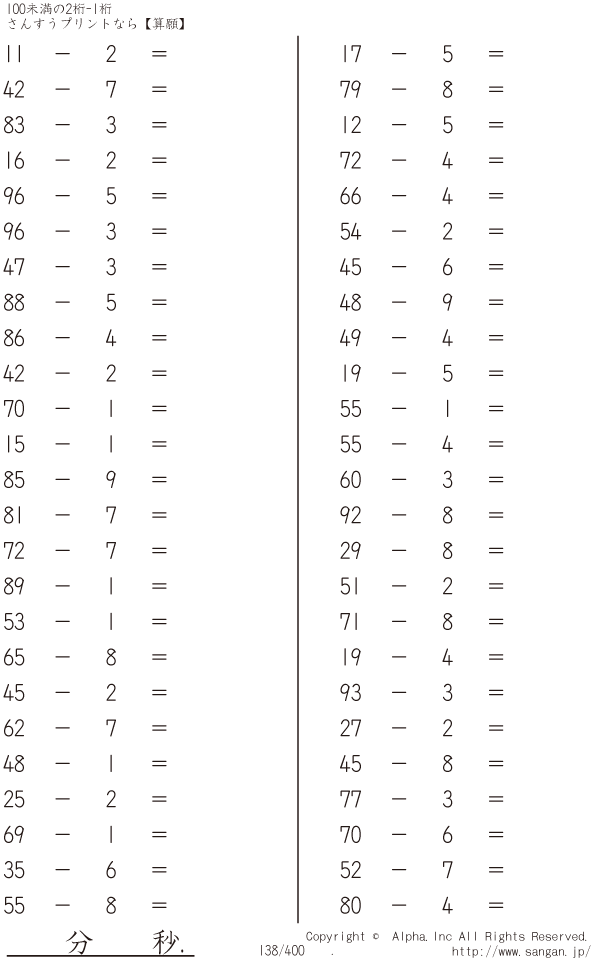 100未満の2桁-1桁 [問題]138/400
