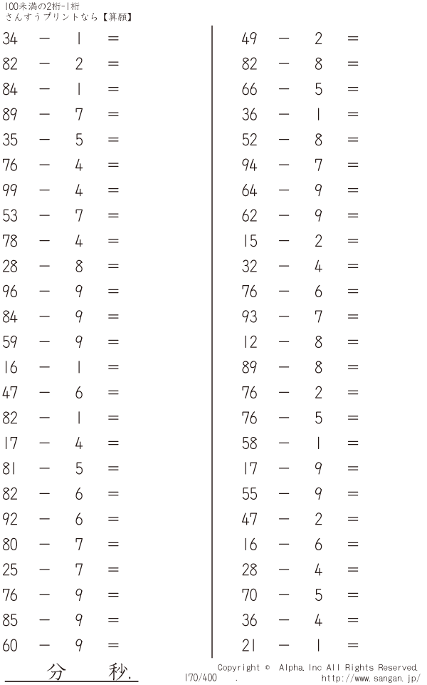 100未満の2桁-1桁 [問題]170/400