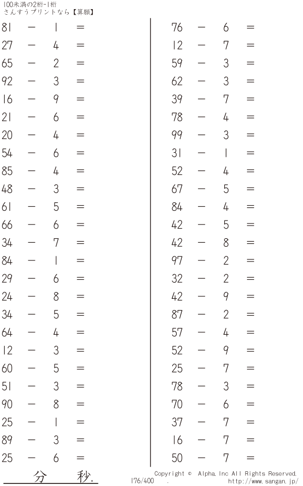 100未満の2桁-1桁 [問題]176/400
