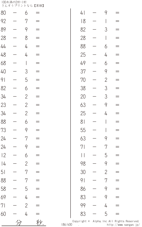 100未満の2桁-1桁 [問題]186/400
