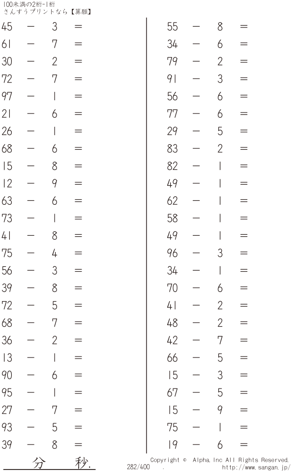 100未満の2桁-1桁 [問題]282/400