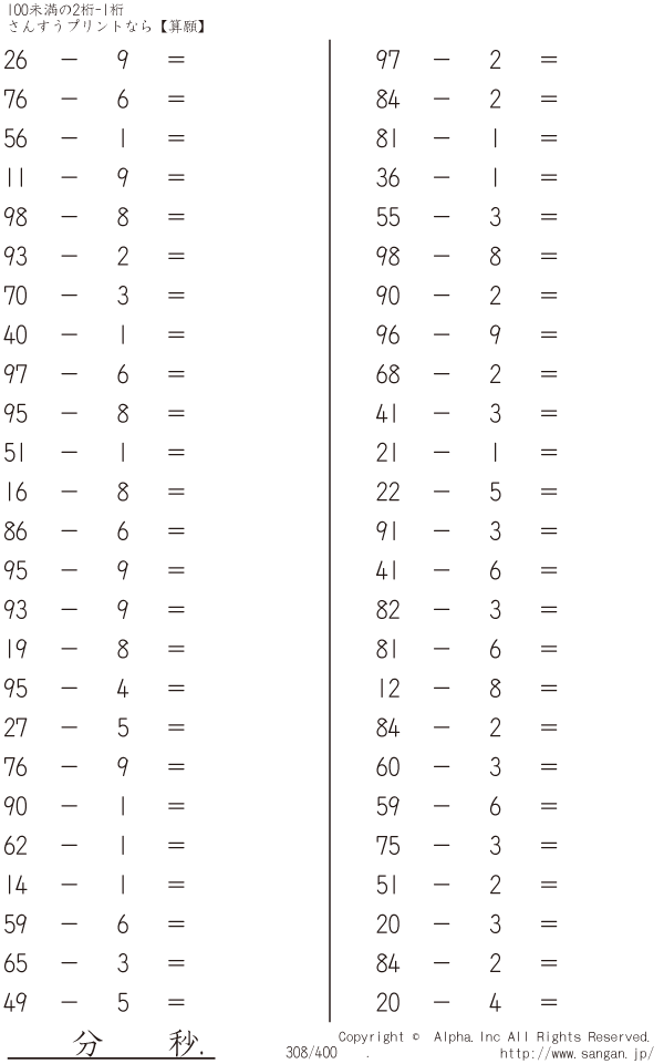 100未満の2桁-1桁 [問題]308/400