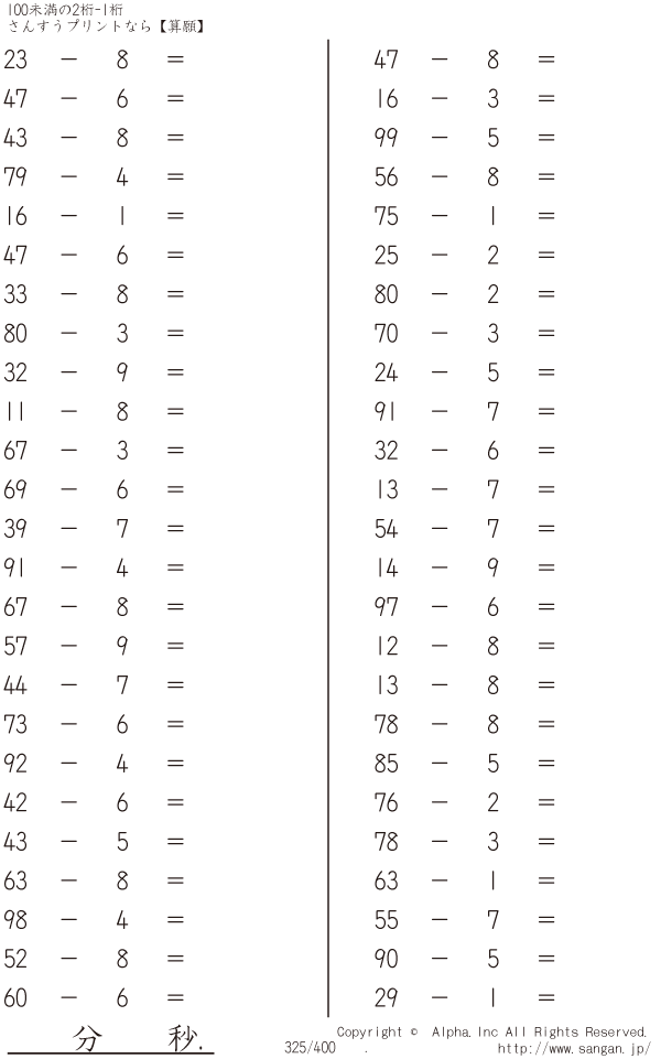 100未満の2桁-1桁 [問題]325/400