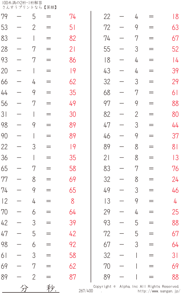 100未満の2桁-1桁 [解答]267/400