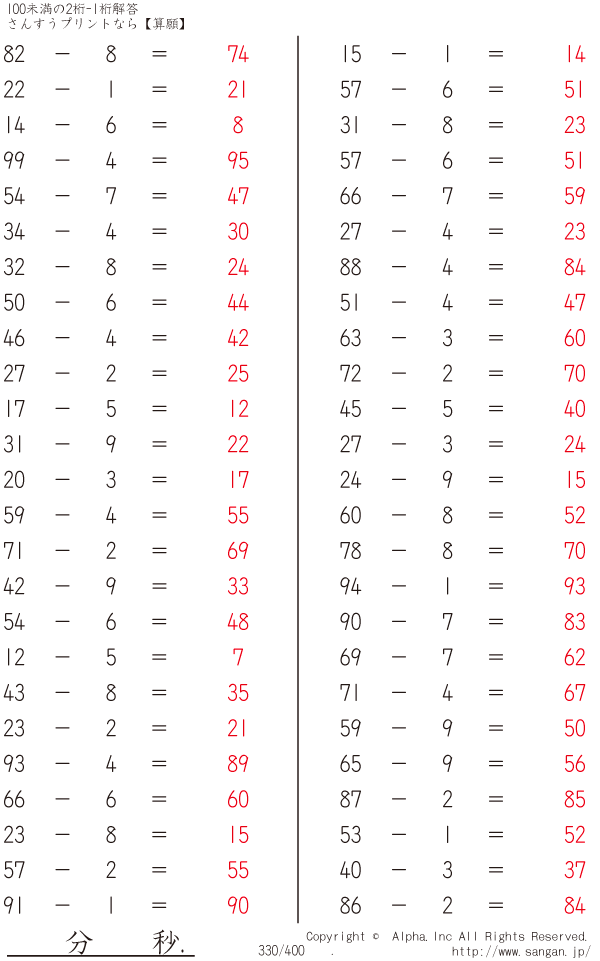 100未満の2桁-1桁 [解答]330/400