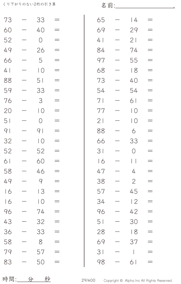 くり下がりのない2桁の引き算 [問題]029/400