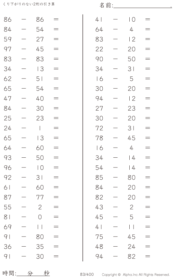 くり下がりのない2桁の引き算 [問題]083/400
