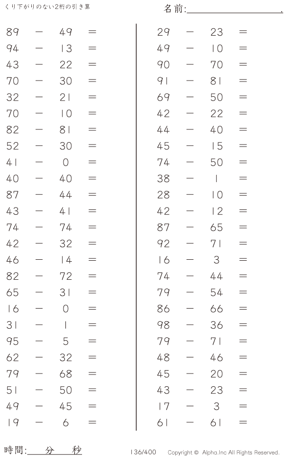 くり下がりのない2桁の引き算 [問題]136/400