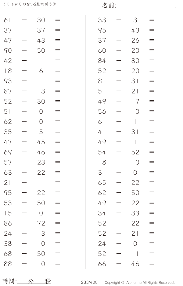 くり下がりのない2桁の引き算 [問題]233/400