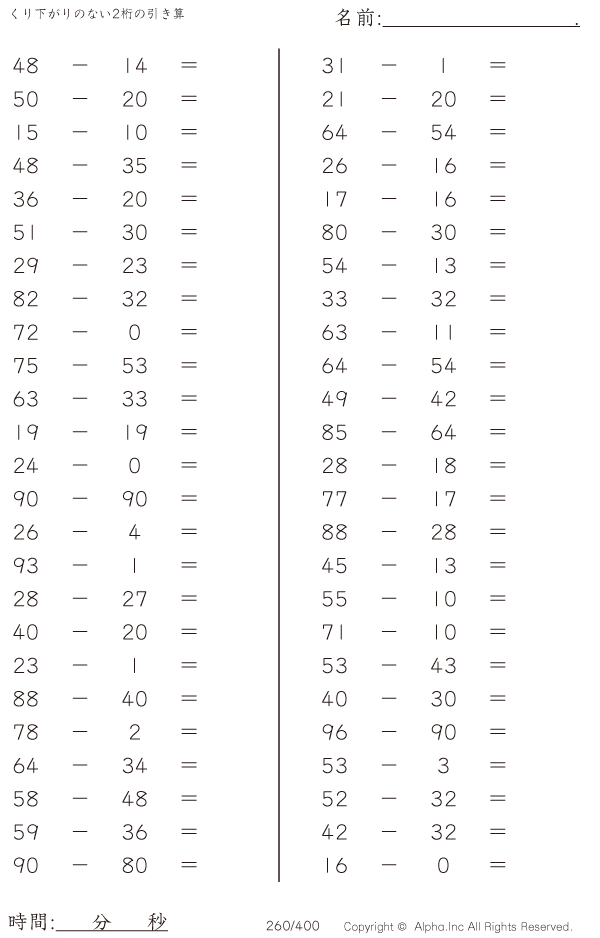くり下がりのない2桁の引き算 [問題]260/400