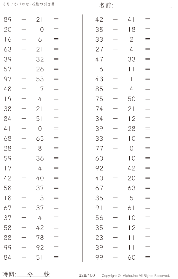 くり下がりのない2桁の引き算 [問題]328/400