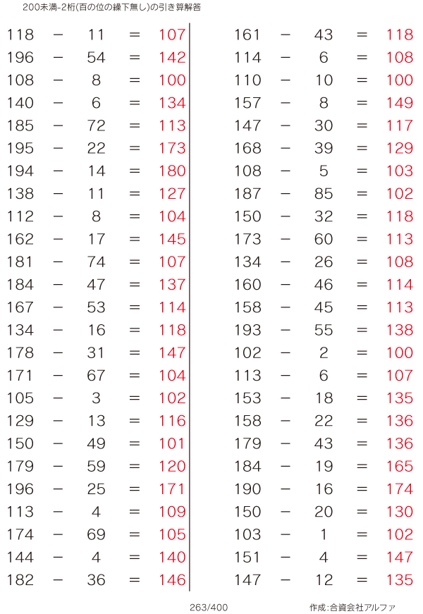 200未満-2桁(100の位の繰下無し)の引き算 [解答]263/400