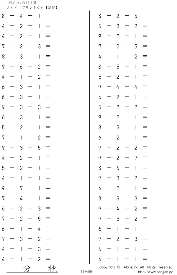 1桁の3つの引き算 [問題]111/400