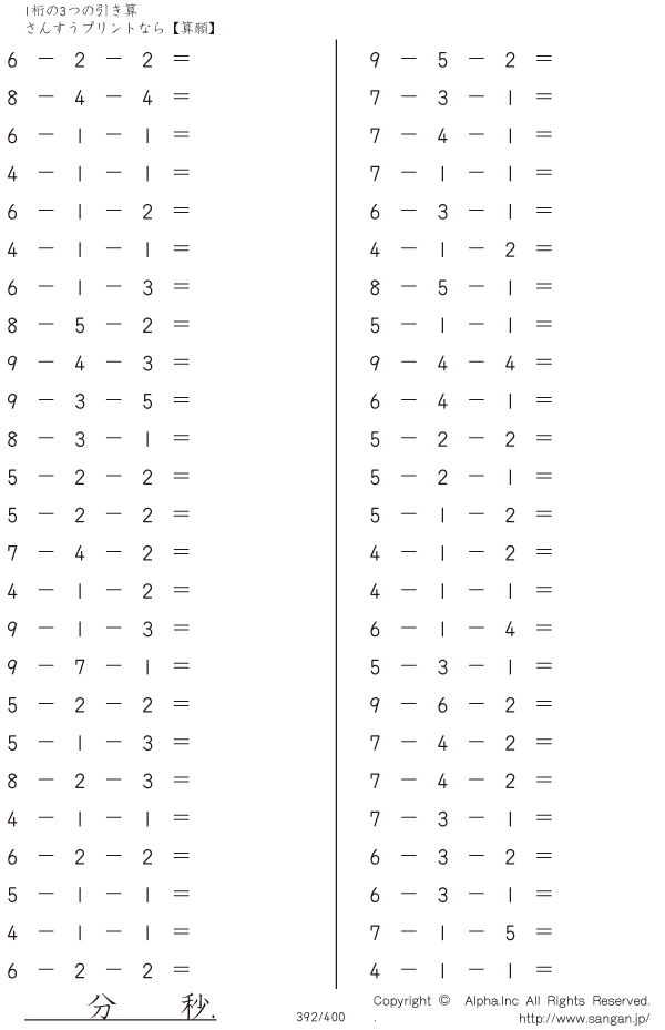 1桁の3つの引き算 [問題]392/400