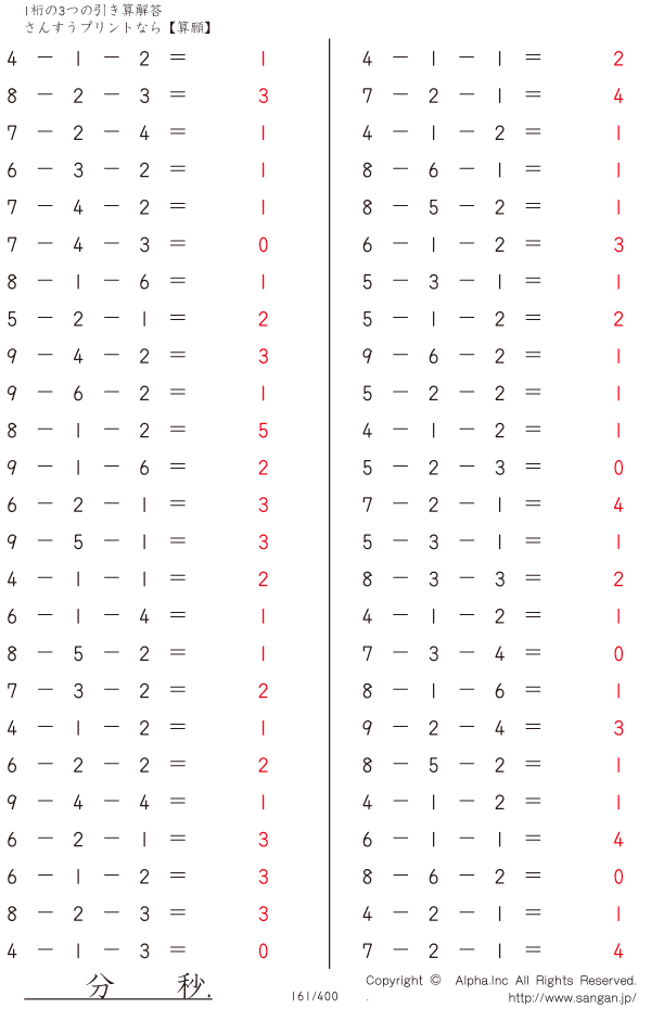 1桁の3つの引き算 [解答]161/400