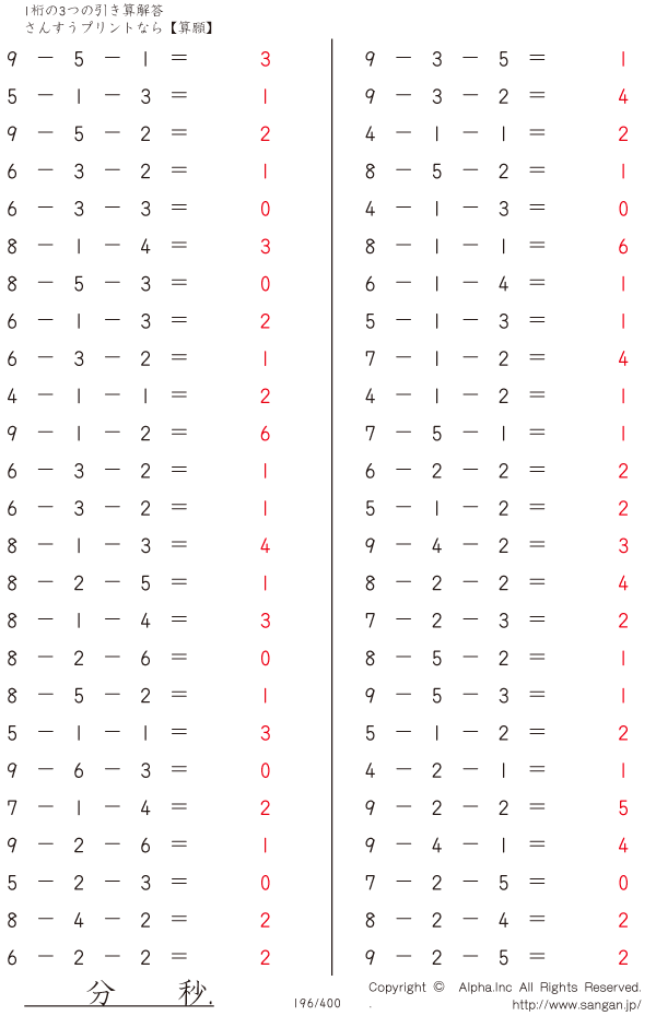 1桁の3つの引き算 [解答]196/400