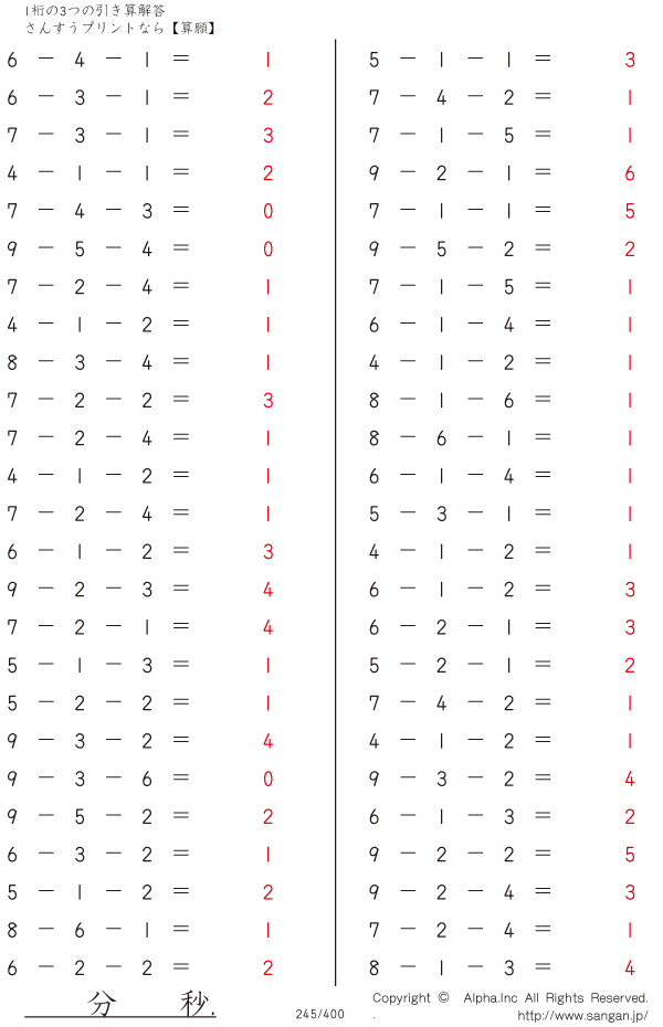 1桁の3つの引き算 [解答]245/400