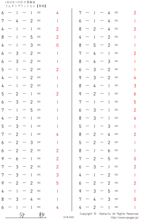 1桁の3つの引き算 [解答]318/400