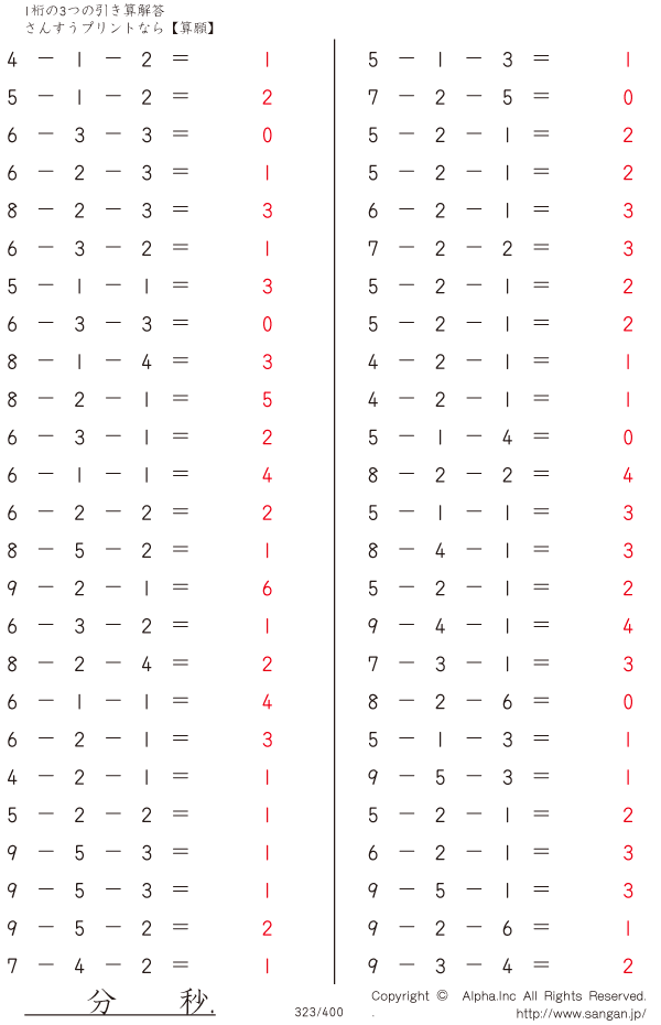 1桁の3つの引き算 [解答]323/400