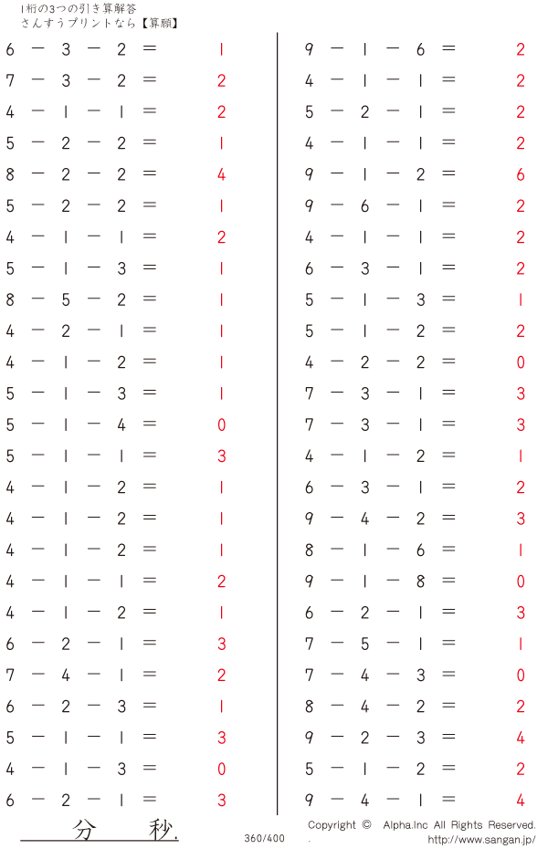 1桁の3つの引き算 [解答]360/400