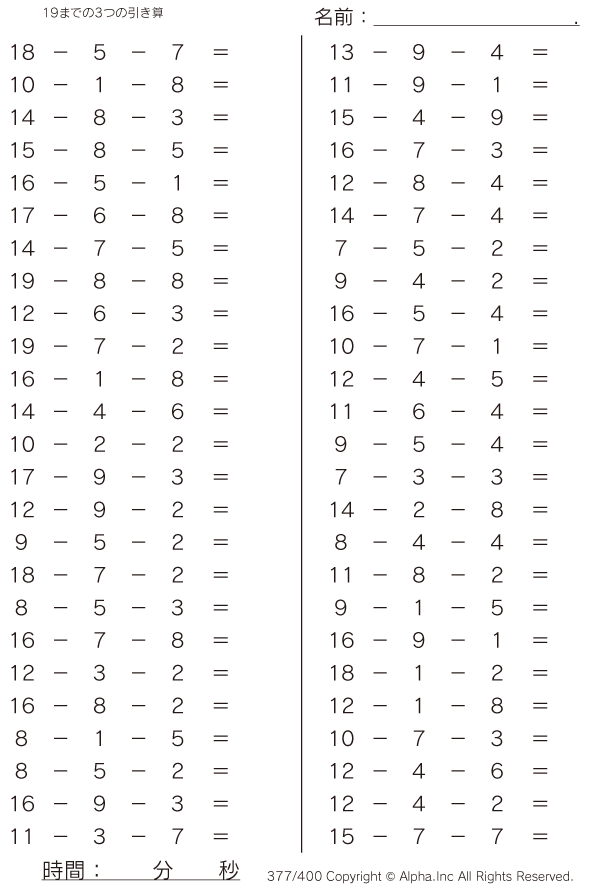 19までの3つの引き算 [問題]377/400