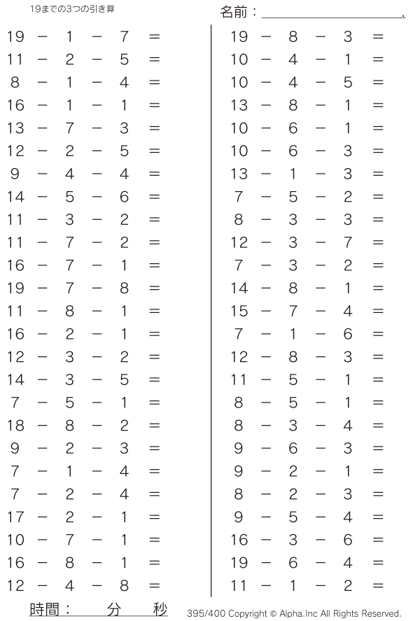 19までの3つの引き算 [問題]395/400