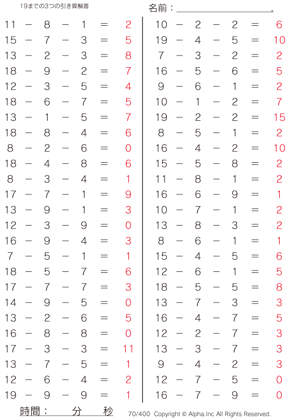 19までの3つの引き算 [解答]070/400