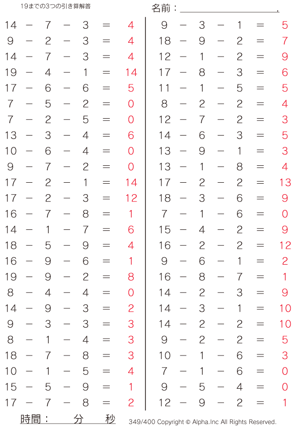 19までの3つの引き算 [解答]349/400