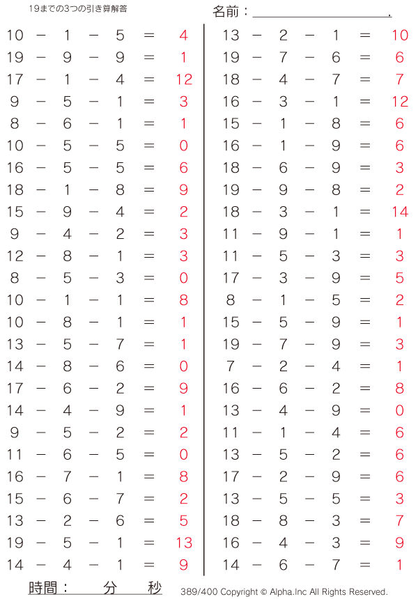 19までの3つの引き算 [解答]389/400