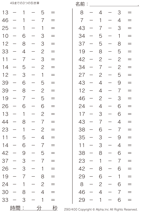 49までの3つの引き算 [問題]290/400