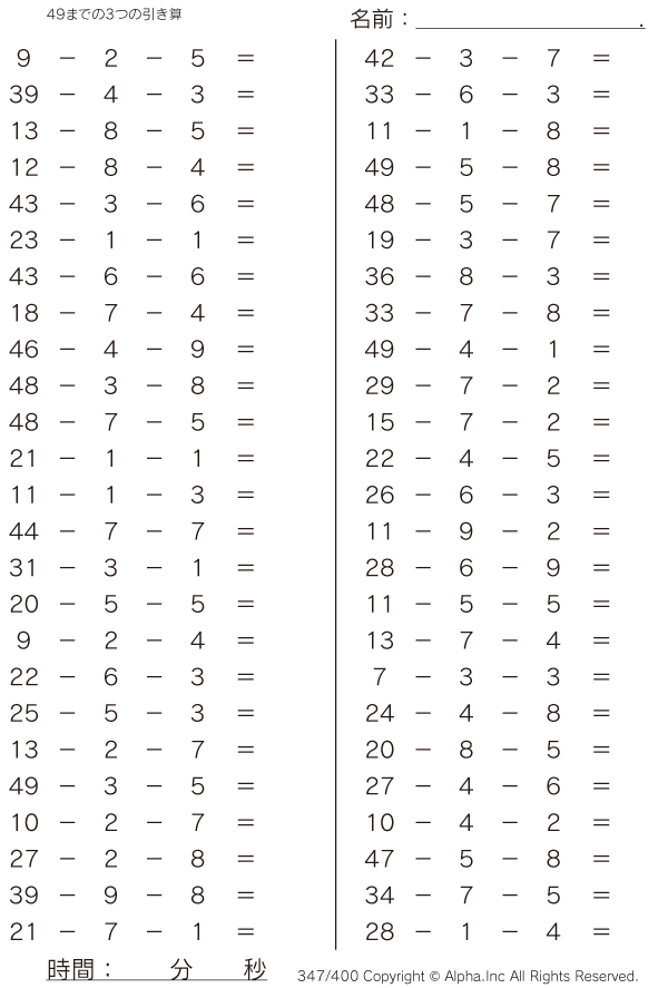 49までの3つの引き算 [問題]347/400