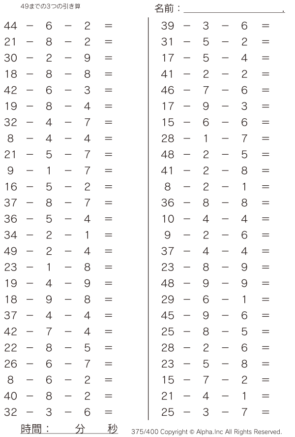 49までの3つの引き算 [問題]375/400