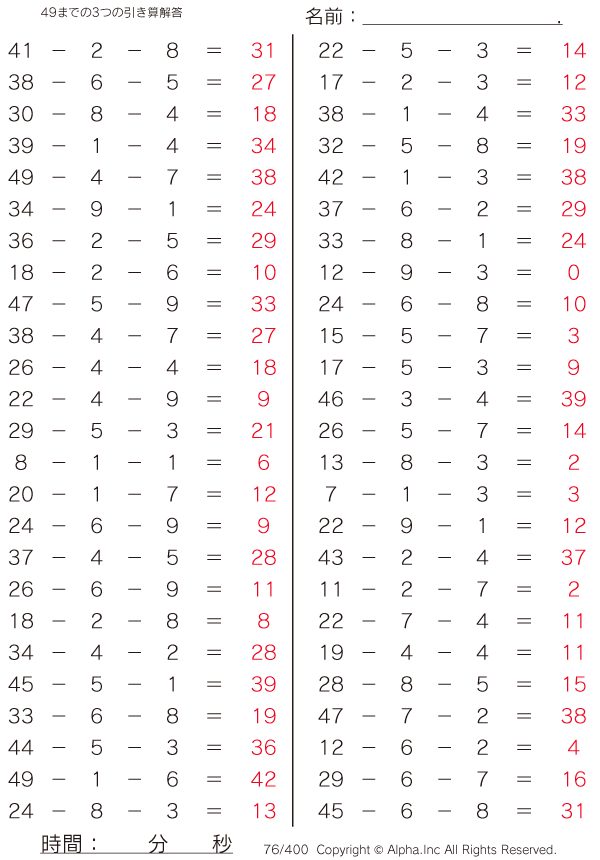 49までの3つの引き算 [解答]076/400