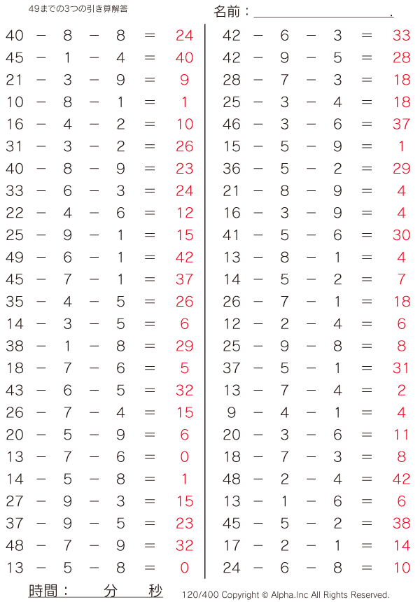 49までの3つの引き算 [解答]120/400