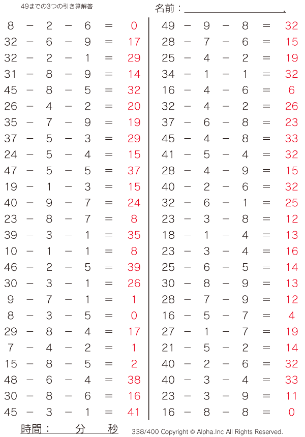 49までの3つの引き算 [解答]338/400