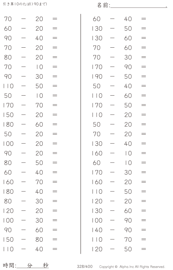 引き算10のたば(190まで) [問題]328/400