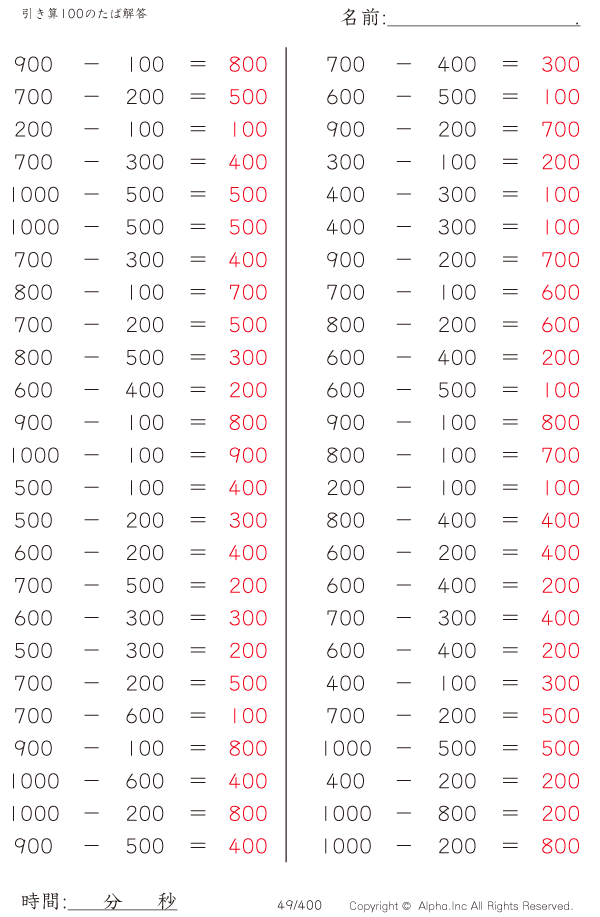 引き算100のたば [解答]049/400