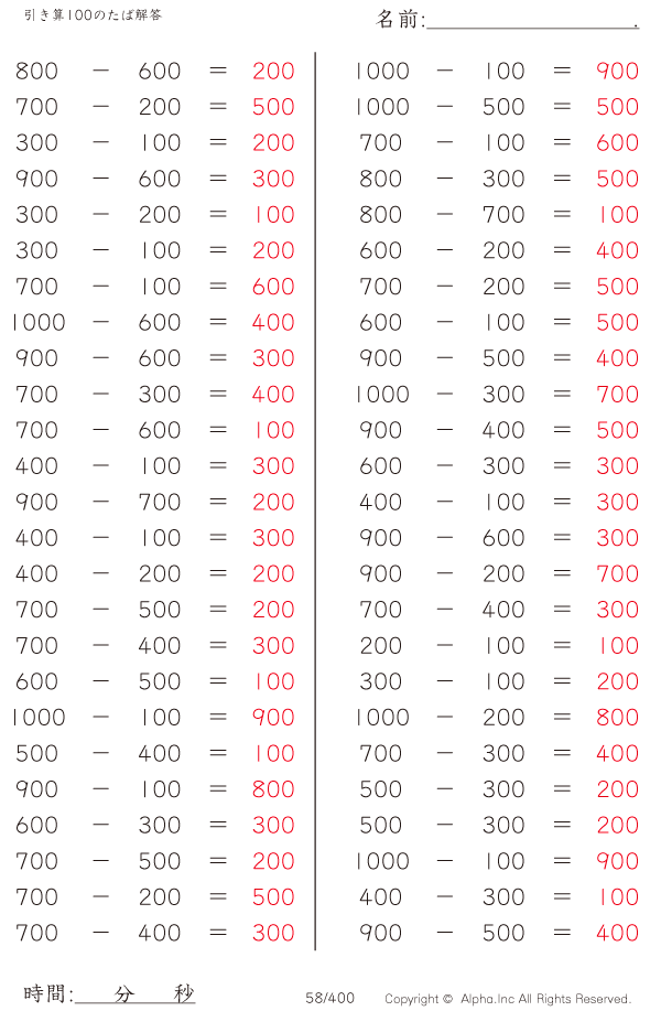 引き算100のたば [解答]058/400