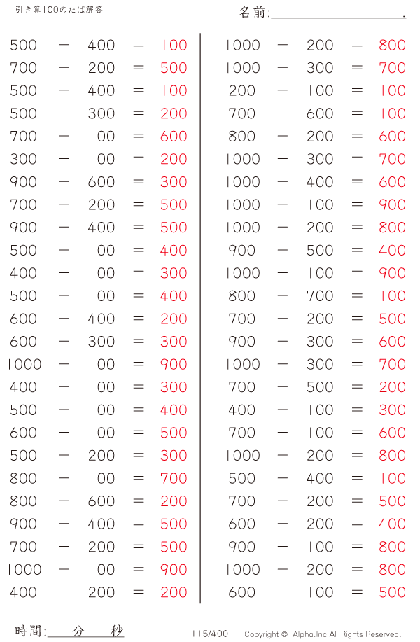 引き算100のたば [解答]115/400