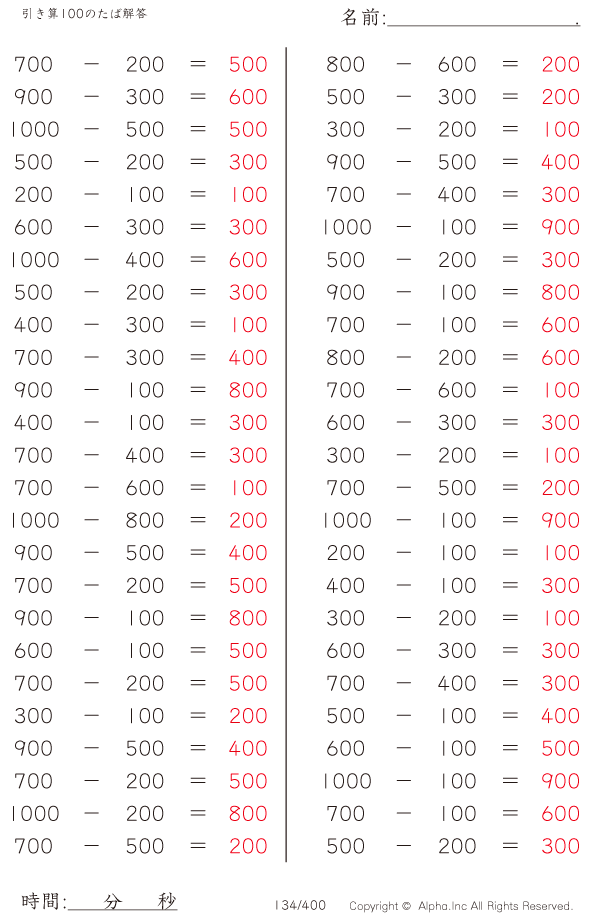 引き算100のたば [解答]134/400